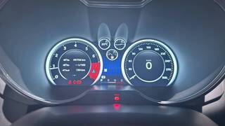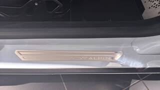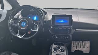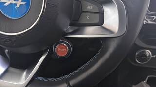 Logo au centre du volant en Bleu Alpine