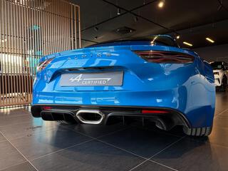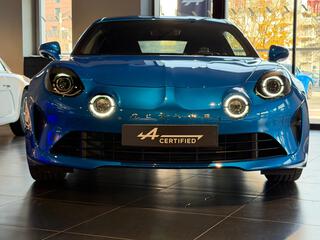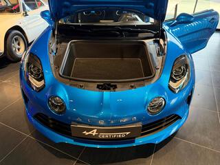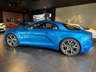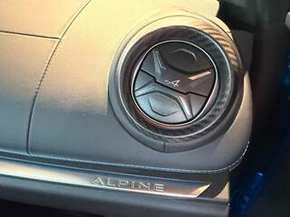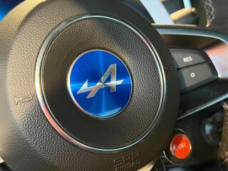 Logo au centre du volant en Bleu Alpine