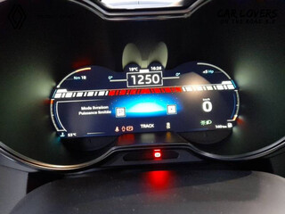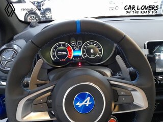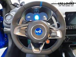 Logo au centre du volant en Bleu Alpine